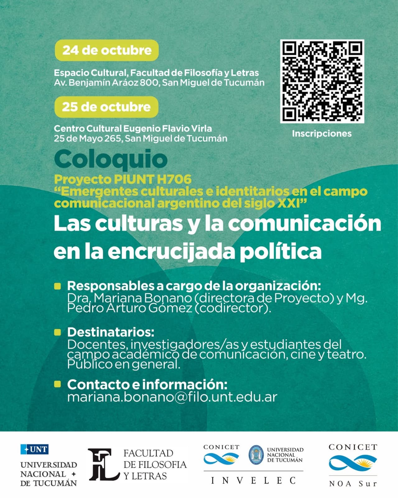 Viernes 24 de octubre – Espacio Cultural Filosofía y Letras - UNT